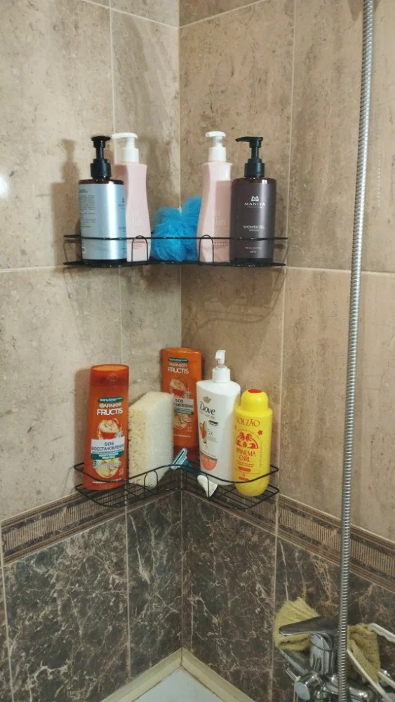 Полка для ванной без сверления, 2 шт - 328₽. Вешаются на присоски или клей, не надо дырявить плитку. Две полки — под шампуни и гели.