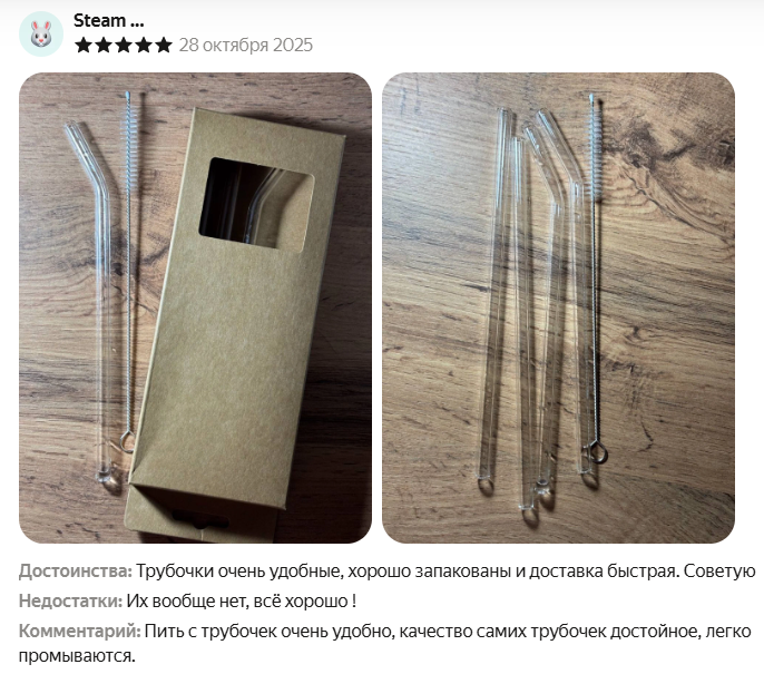 Набор трубочек «Симпл», 4 шт + ёршик - 138₽. Стеклянные, многоразовые. Пить приятнее, чем из пластика, и ёршик в комплекте, чтобы мыть.