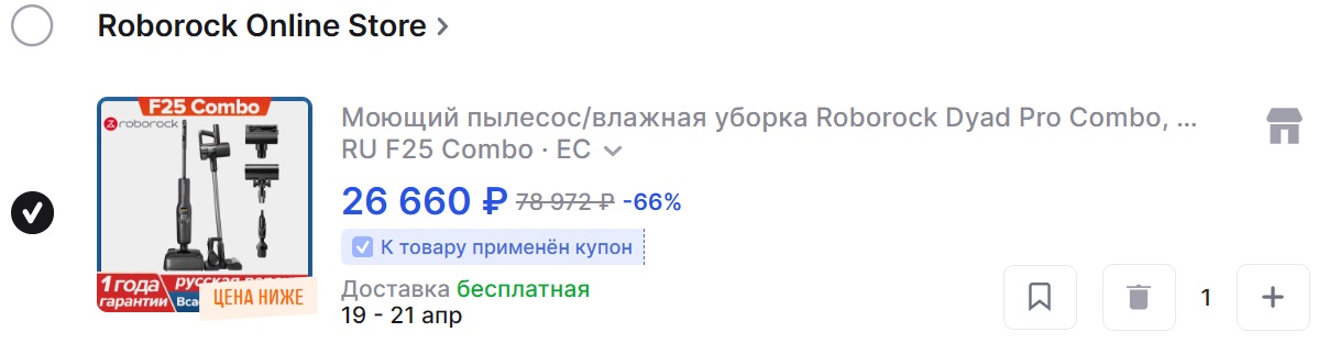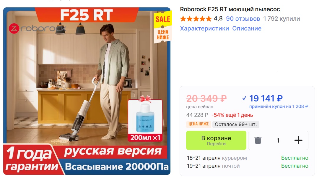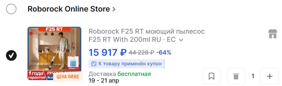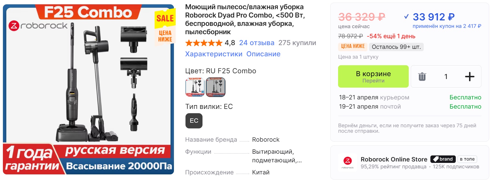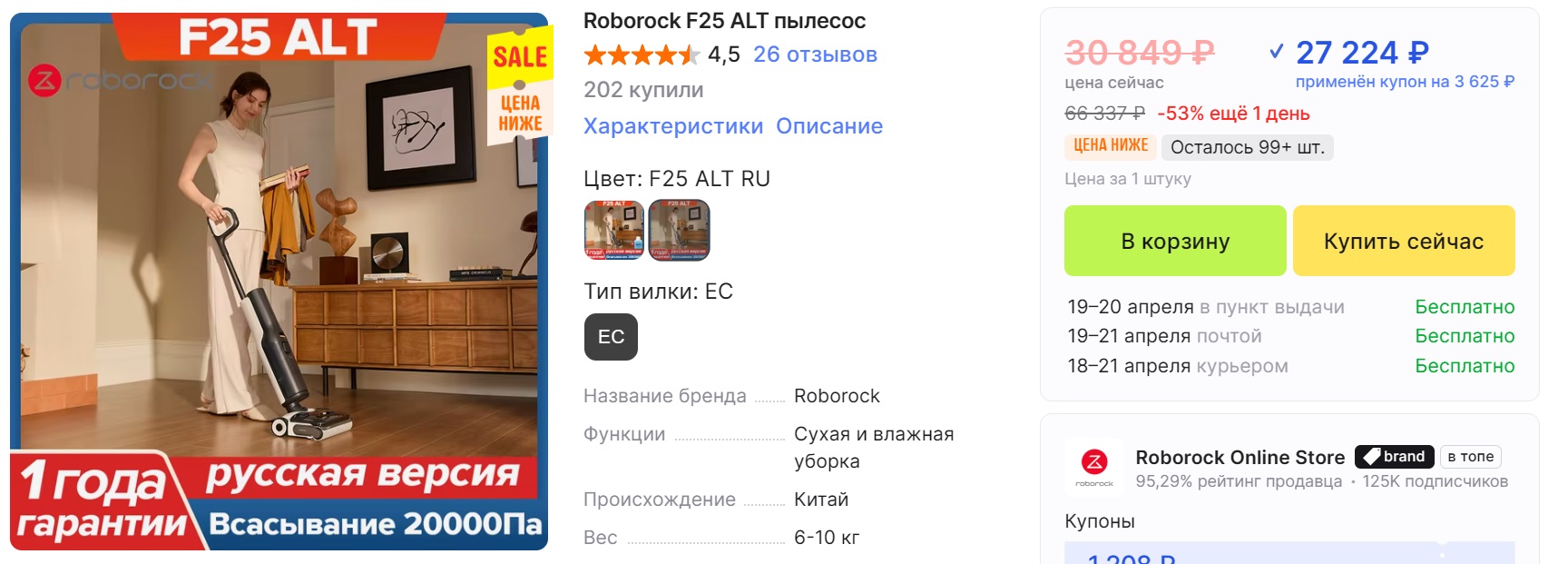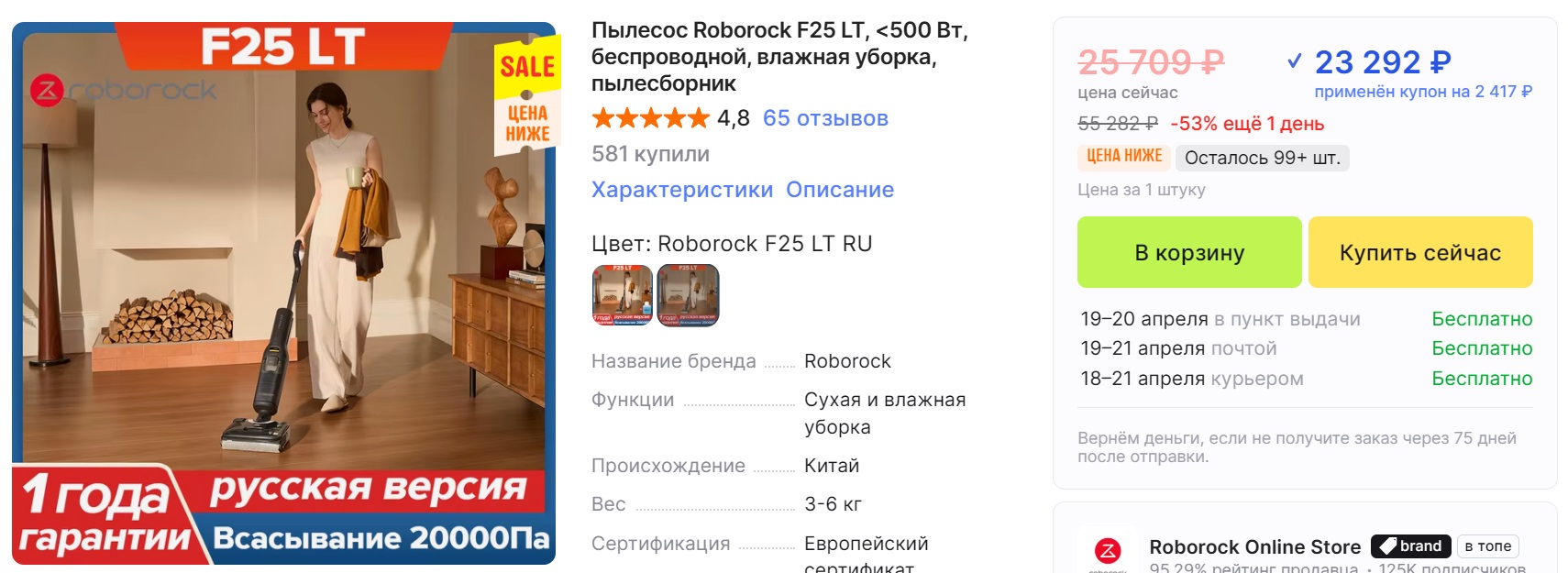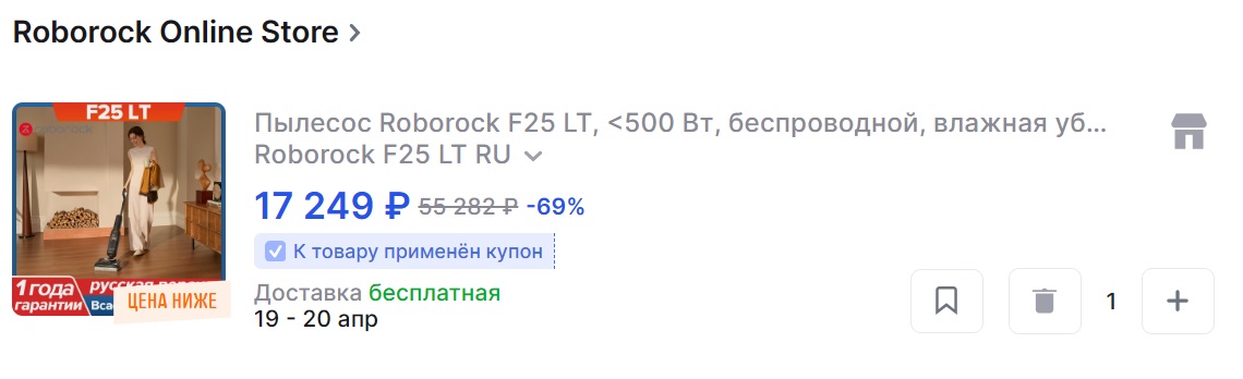 Roborock F25 RT за 15917₽, у нас такой 20797₽