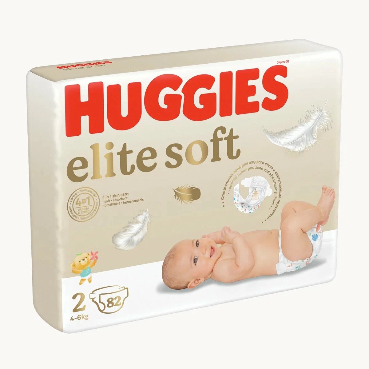 Подгузники Elite Soft 2 для новорожденных (4-6кг), 82 шт. за 902₽