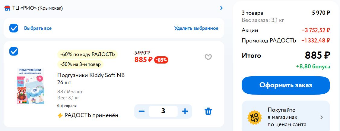 -50% на 3-й товар - добавьте в корзину 3 упаковки, скидка применится автоматически