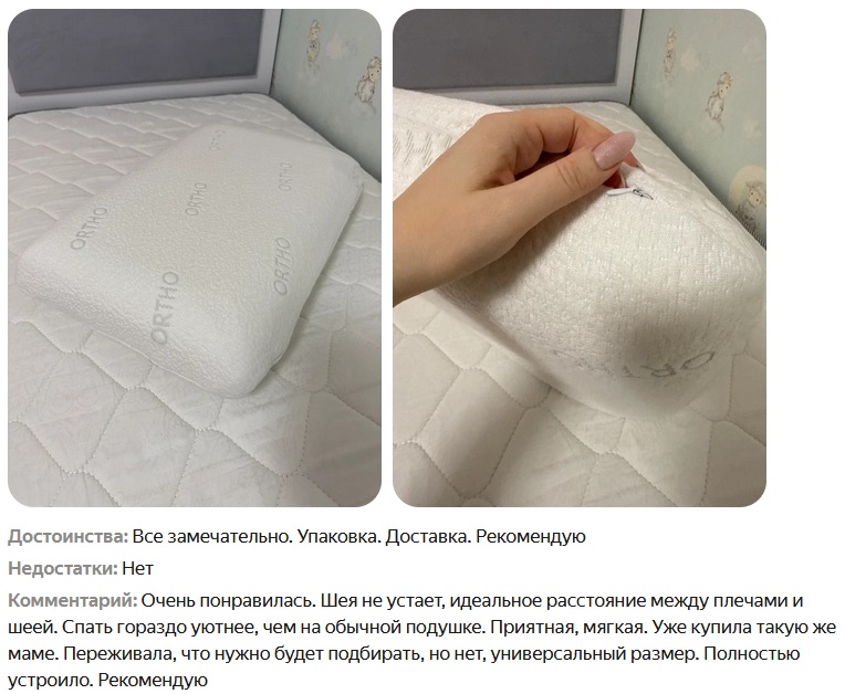 Подушка известного бренда, обладает эффектом памяти, поддерживает голову и шею в удобном положении, снижая нагрузку на позвоночник.