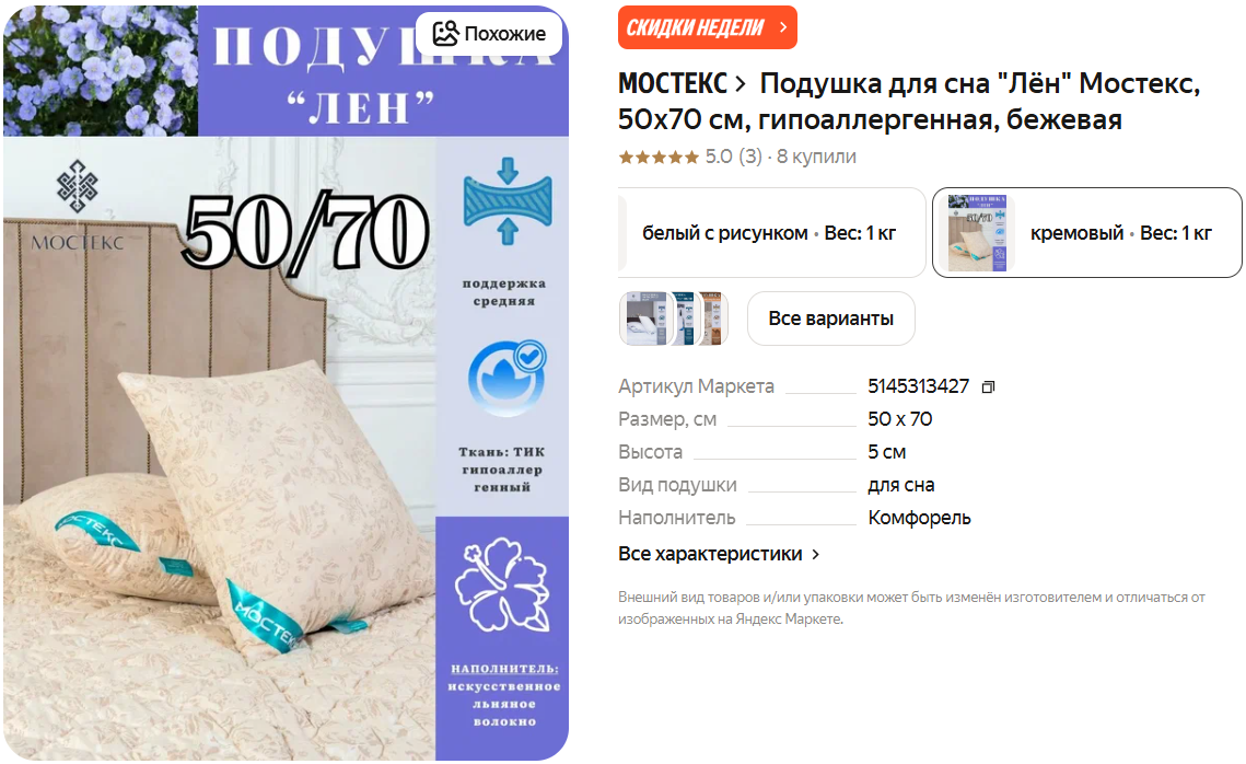 А ещё дают 100 баллов Плюса за отзыв. С наполнителем из льняного волокна и холлофайбера - упругая, хорошо держит форму и быстро восстанавливается. Гипоаллергенная, не заводятся пылевые клещи и бактерии. Чехол из тика (хлопок с микрофиброй), стёганый, с рисунком.