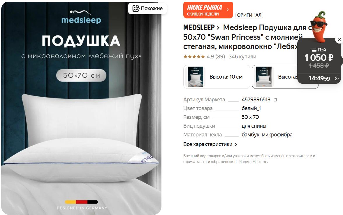 Классная подушка. У самой такая. Берите - не пожалеете. Там еще 100 баллов за фото/видеоотзыв дадут. Обычно от 1600 такая.