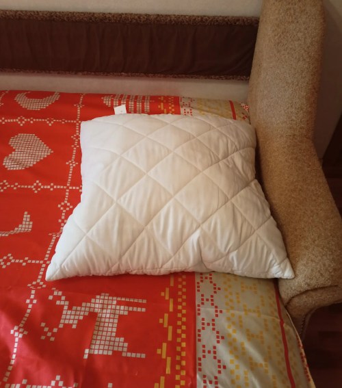Стёганая, с мягкой степенью поддержки - подойдёт тем, кто любит «провалиться» в подушку, а не спать на жёсткой. Гипоаллергенная, можно спокойно использовать на каждый день.