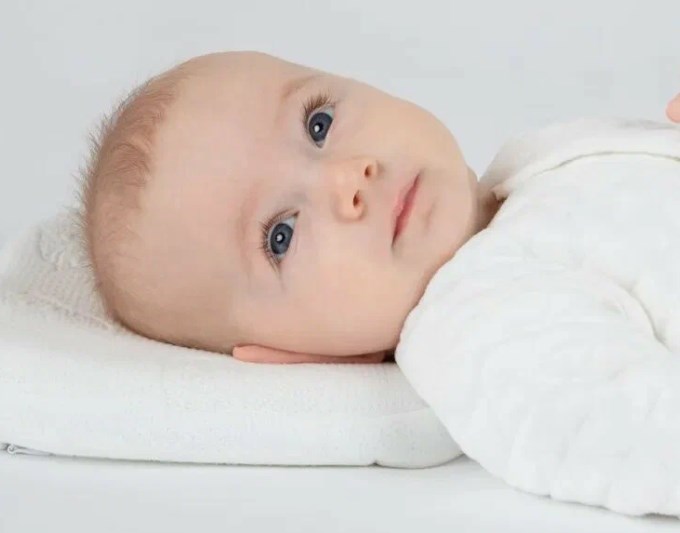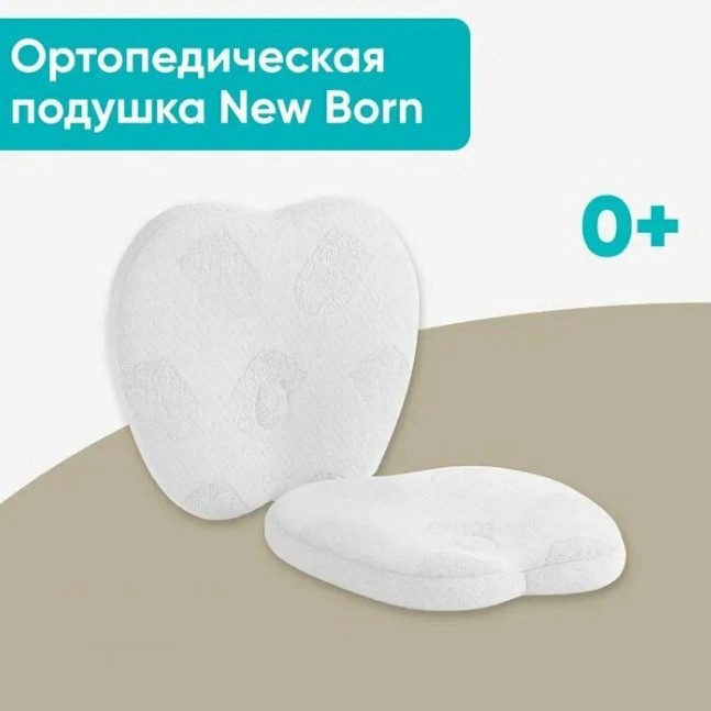 Размер 24×23 см, высота всего 3 см. Внутри пена с эффектом памяти, есть анатомическая выемка в центре. Это важно для самых маленьких - даже если ребёнок перевернётся во сне, подушка не создаст опасного изгиба шеи.