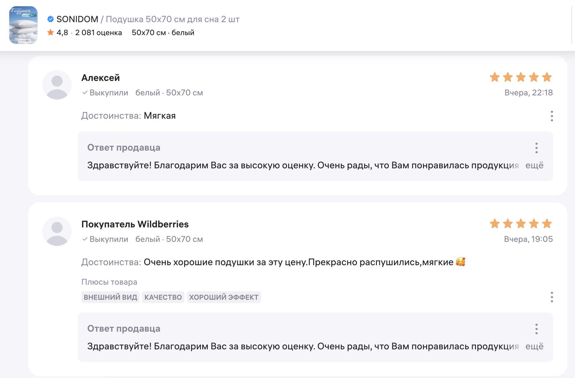 Подушка "SONIDOM" 50x70 см, 2 шт на Wildberries