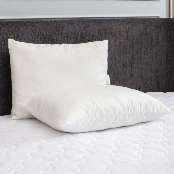 Мягкие, наполнитель полиэфирное волокно, чехол из микрофибры. Гипоаллергенные. По отзывам, форму держат, не сбиваются, нормально спина отдыхает. Стирка при 40 градусах.