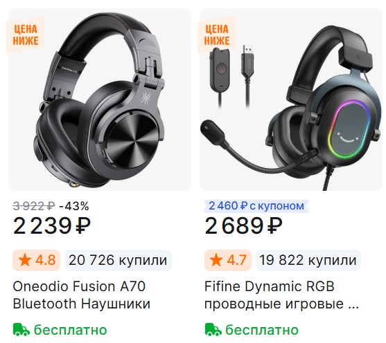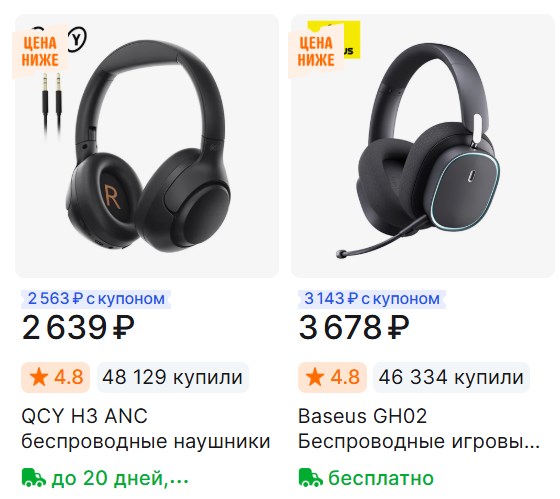 Привет. На Али сейчас распродажа полноразмерных наушников - скидки до 70%, доставка быстрая. Подобрал несколько моделей с нормальными ценами: