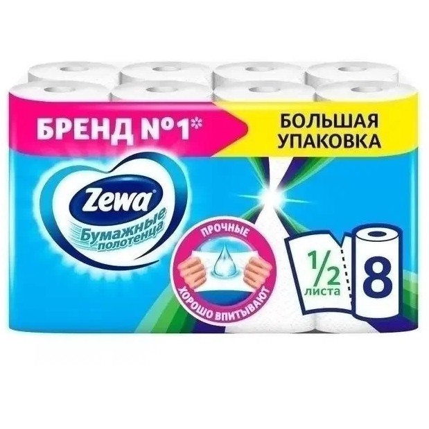 Посмотреть другиеПолотенца бумажные Zewa Standard белые двухслойные, 8 рулонов