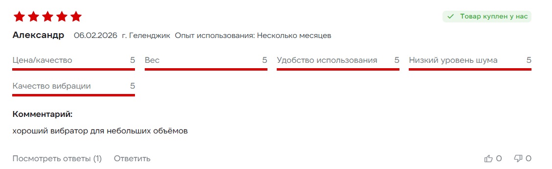 Неплохой вибратор вдвое дешевое обычного. Мощность 800 Вт, вал 1.5 метра, частота 13000 виб/мин. Удобно, что есть гибкий вал и узкий наконечник для работы с арматурой. Вдруг пригодится для фундамента или блоков.