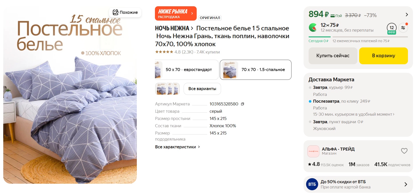 Постельное белье 1 5 спальное Ночь Нежна Грань, ткань поплин, наволочки 70х70 за 894₽