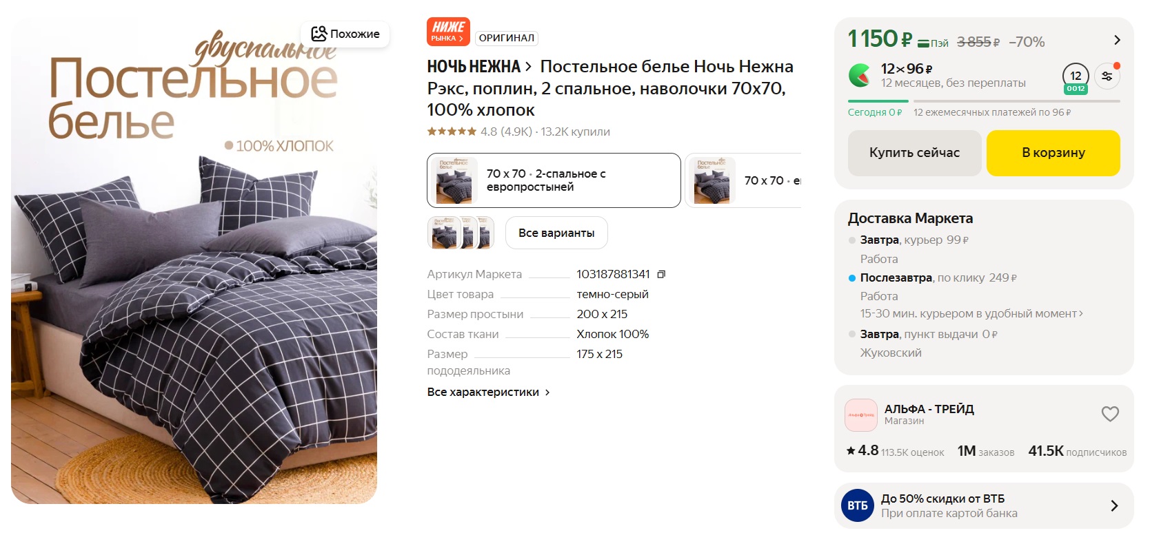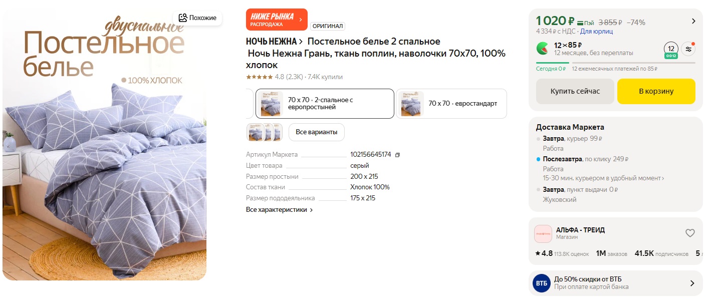 Низкие цены на постельное белье Ночь Нежна. Например, 2 спальное, поплин, наволочки 70х70