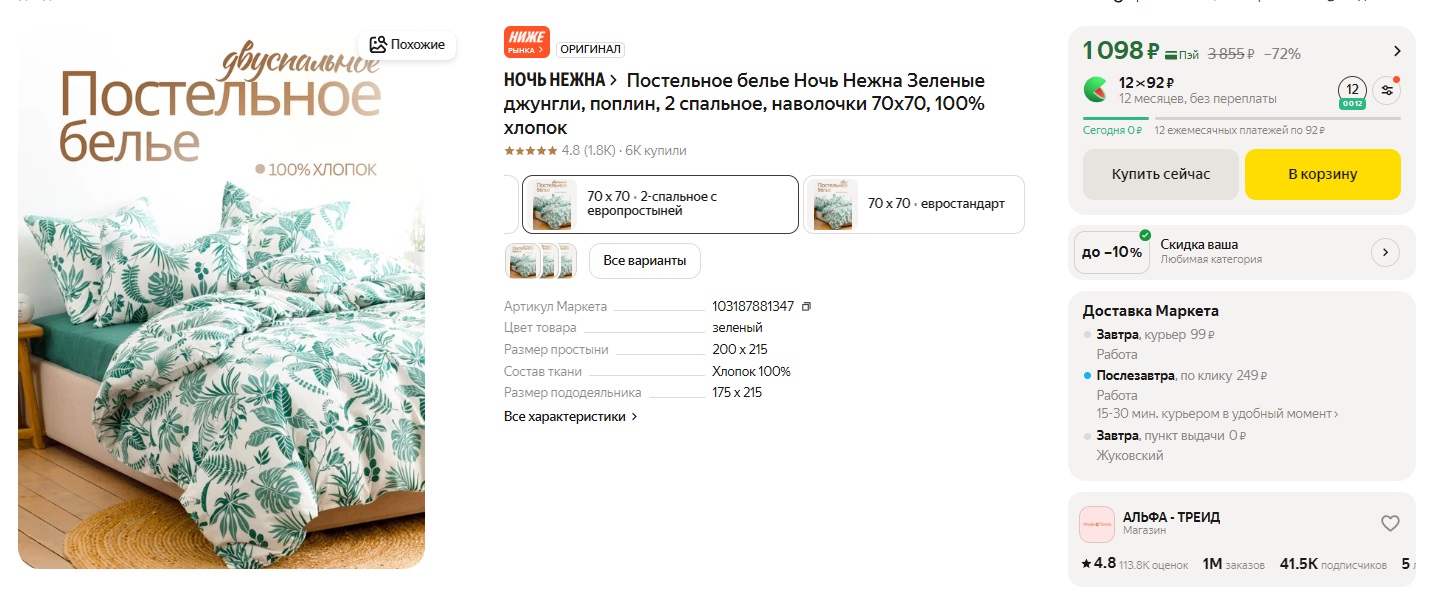 Постельное белье Ночь Нежна Зеленые джунгли, поплин, 2 спальное за 1098₽. Плотность ткани110 г/м². В наборе пододеяльник (175х215 см), простыня (200х220 см) и 2 наволочки (70х70 см).