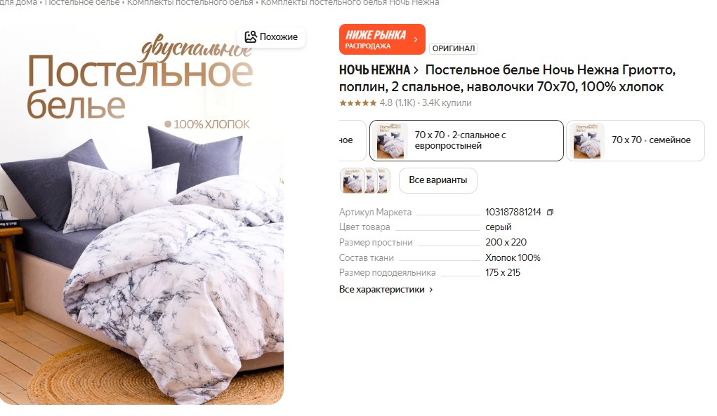 Постельное белье Ночь Нежна Гриотто, поплин, 2 спальное за 1020₽