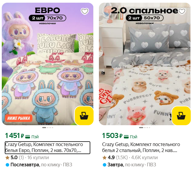 Crazy Getup, Комплект постельного белья Евро, Поплин, 2 нав. 70х70, Labubu, Лабуба за 1451р