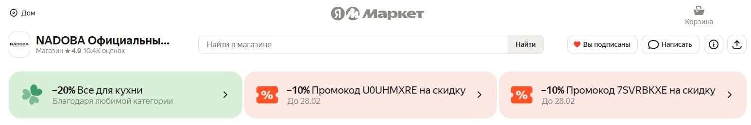 На Яндекс Маркет отличные цены на посуду и товары для кухни от бренда NADOBA + целая куча промиков с дополнительной скидкой!