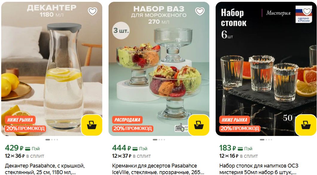 Посуда и приборы для сервировки стола по отличным ценам с доп. скидкой 20% по промокоду на Яндекс Маркет