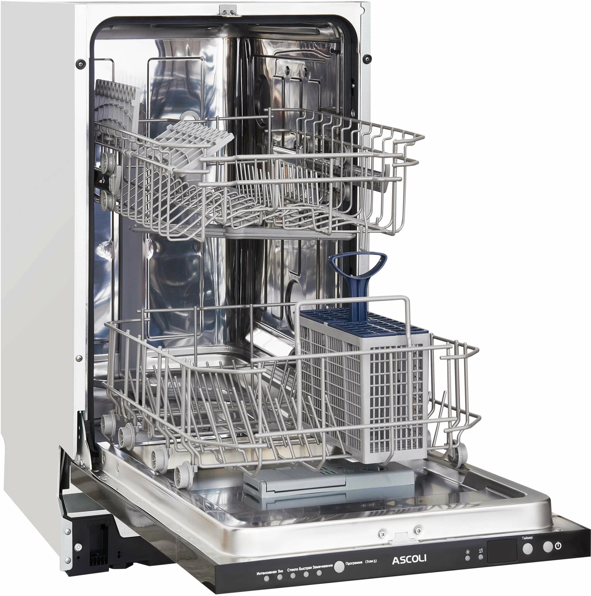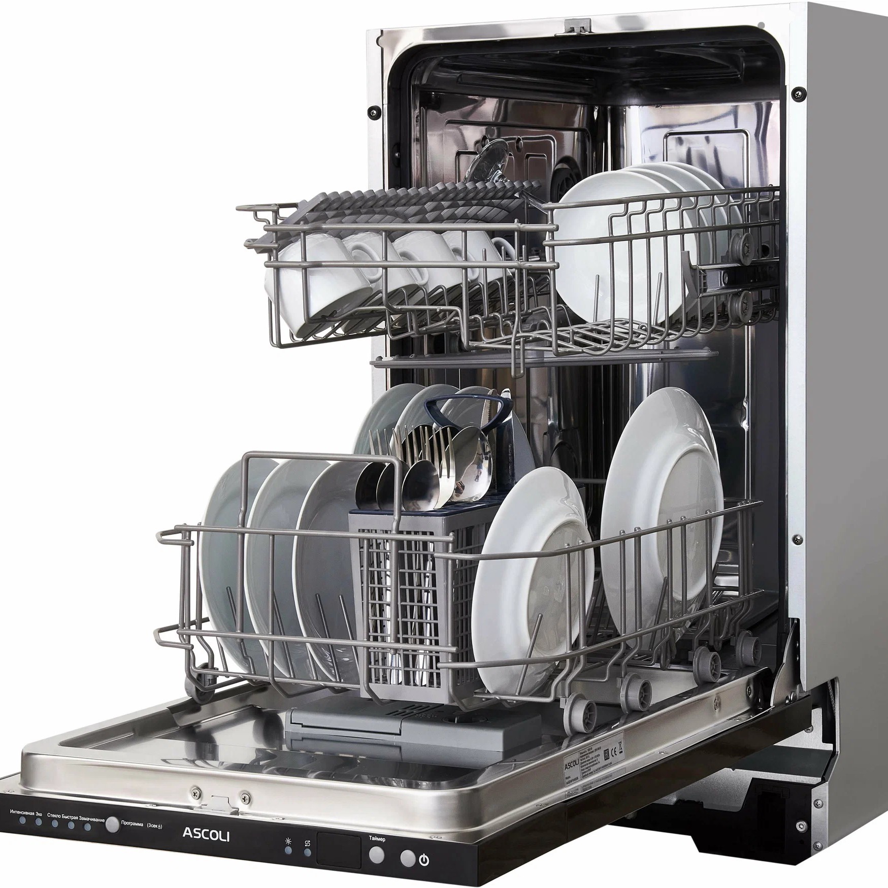 Машинка встраиваемая, ширина 44.8 см, подойдёт для компактной кухни. Вмещает 9 комплектов посуды, отлично для небольшой семьи, есть 5 программ мойки, управление электронное. Цена ниже чем везде.