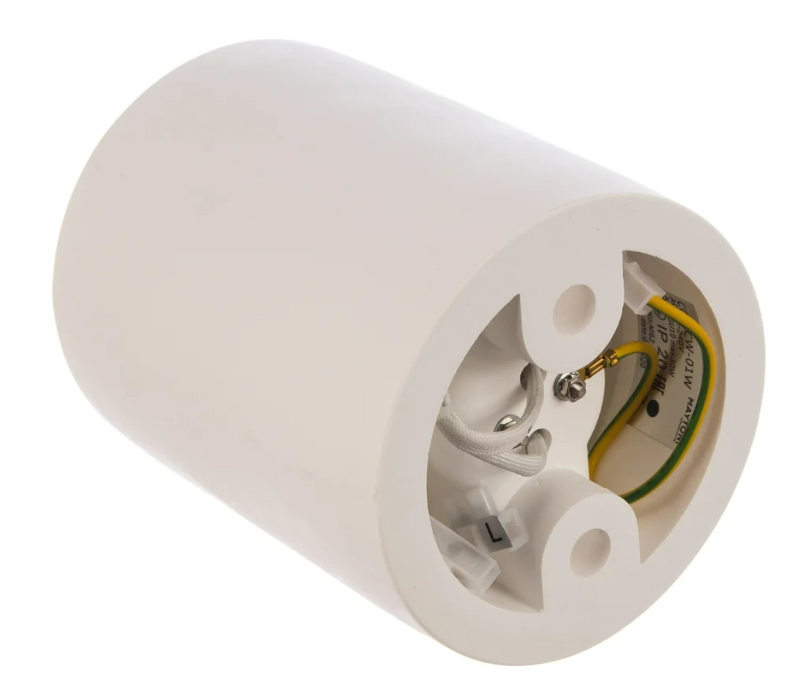 Накладной светильник для монтажа прямо на поверхность, без лишней возни с углублениями. Корпус из гипса, матовый. Даёт чёткий, естественный белый свет 3300-5000K, как раз чтобы ничего не искажало и глаза не уставали.