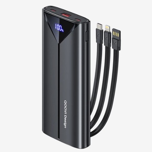 Это повербанки с уже встроенными кабелями - сразу три штуки: micro-USB, Type-C и Lightning, то есть для большинства телефонов, старых и новых. Ёмкость можно выбрать от 10000 до 30000 мАч в зависимости от того, что вам нужно: зарядить пару раз телефон или таскать с собой запас энергии на несколько дней. Мощность до 22,5 Вт, так что быстрая зарядка поддерживается. На корпусе дисплей, который показывает, сколько заряда осталось в процентах, а не просто лампочками. Можно заряжать несколько гаджетов одновременно (порты тоже есть в дополнение к проводам). Цена стартует от 719 рублей.
