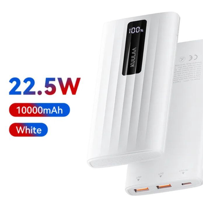 Быстрая зарядка есть, два USB-порта - можно и телефон воткнуть, и наушники заодно. Цифровой индикатор показывает реальный остаток, а не просто лампочки. Корпус пластиковый, лёгкий, защита от перегрева и короткого - не сгорит.