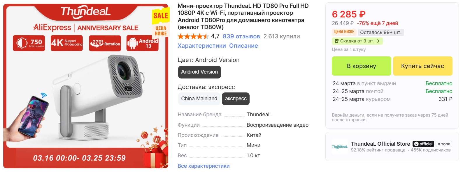 Обновленный Thundeal TD80W. Сделали картинку ярче, контрастнее и динамичнее. Его можно ставить рядом с кроватью и смотреть кино на потолке. За свои деньги выглядит неплохо.