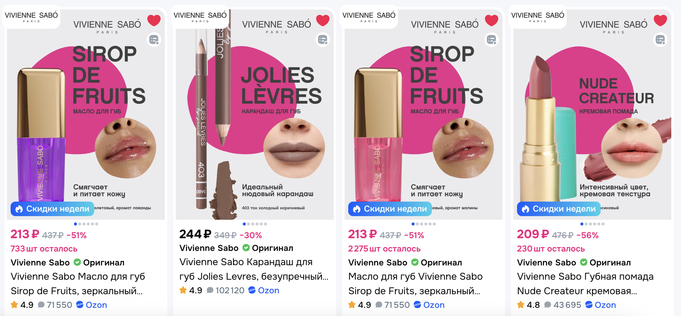 В каталоге помады, блески, карандаши, бальзамы и тинты для губ. Активируй купон и скидка 30% применится автоматически!