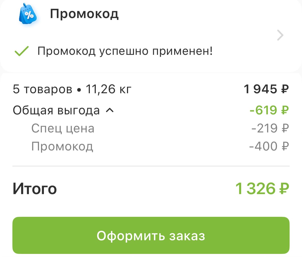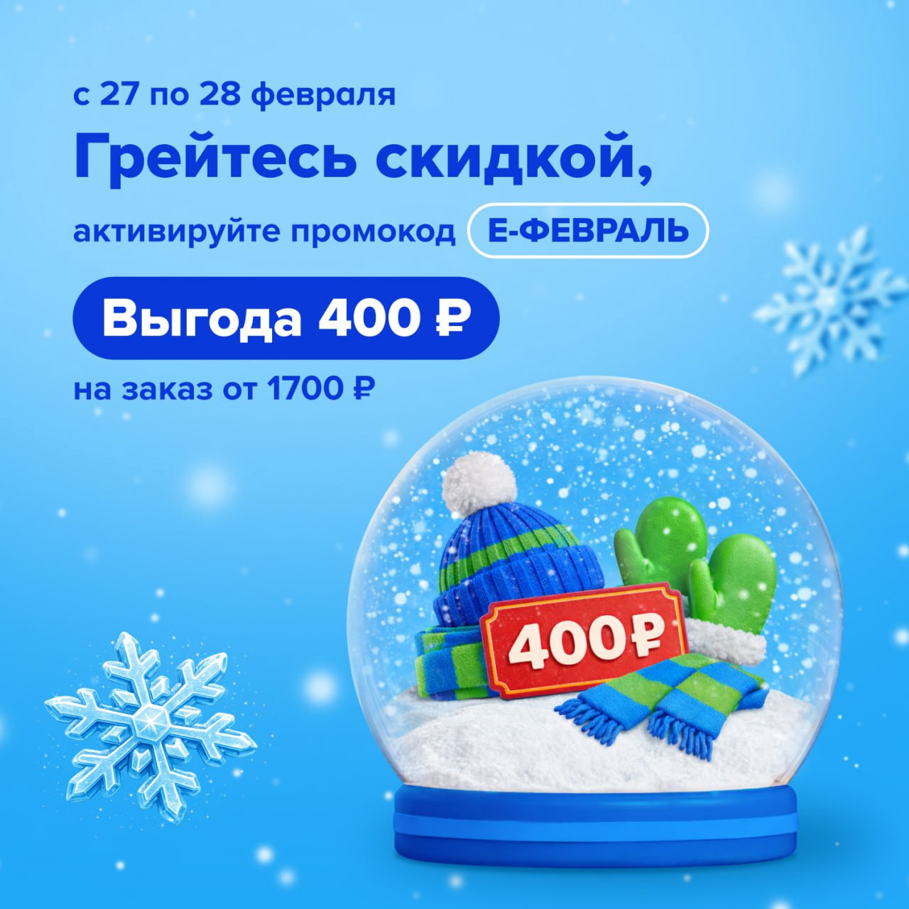 С 27 по 28 февраля включительно оформите заказ от 1700 рублей с доставкой, экспресс-доставкой или самовывозом на сайте или в приложении.
