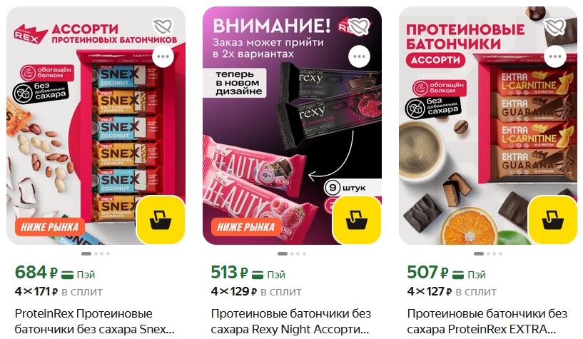 Хорошие цены на протеиновые десерты ProteinRex. Есть батончики, печенье, пирожные и другие десерты.