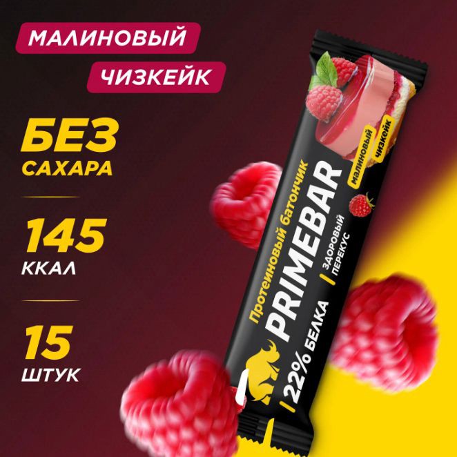 Протеиновые батончики PRIMEBAR Малиновый Чизкейк по 30₽ за штуку. Упаковка 15 штук за 464₽ на Маркете.