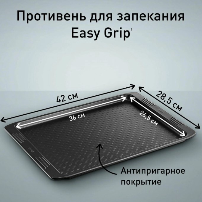 Нашла на Маркете противень Tefal за 830₽. Ручки там такие, широкие силиконовые - даже горячий спокойно переносится.