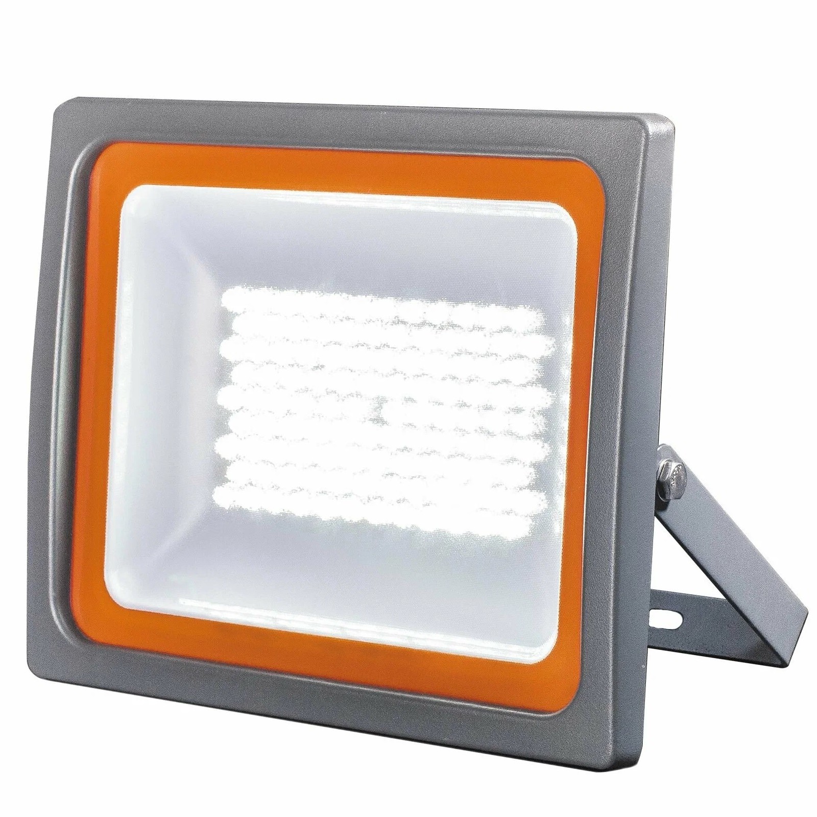 Светодиодный прожектор для наружного и внутреннего освещения. Мощность 10 Вт, яркость 850 люмен, холодный белый свет (6500K) и регулируемый угол наклона. Корпус ударопрочный, заявленный ресурс до 30 000 часов.