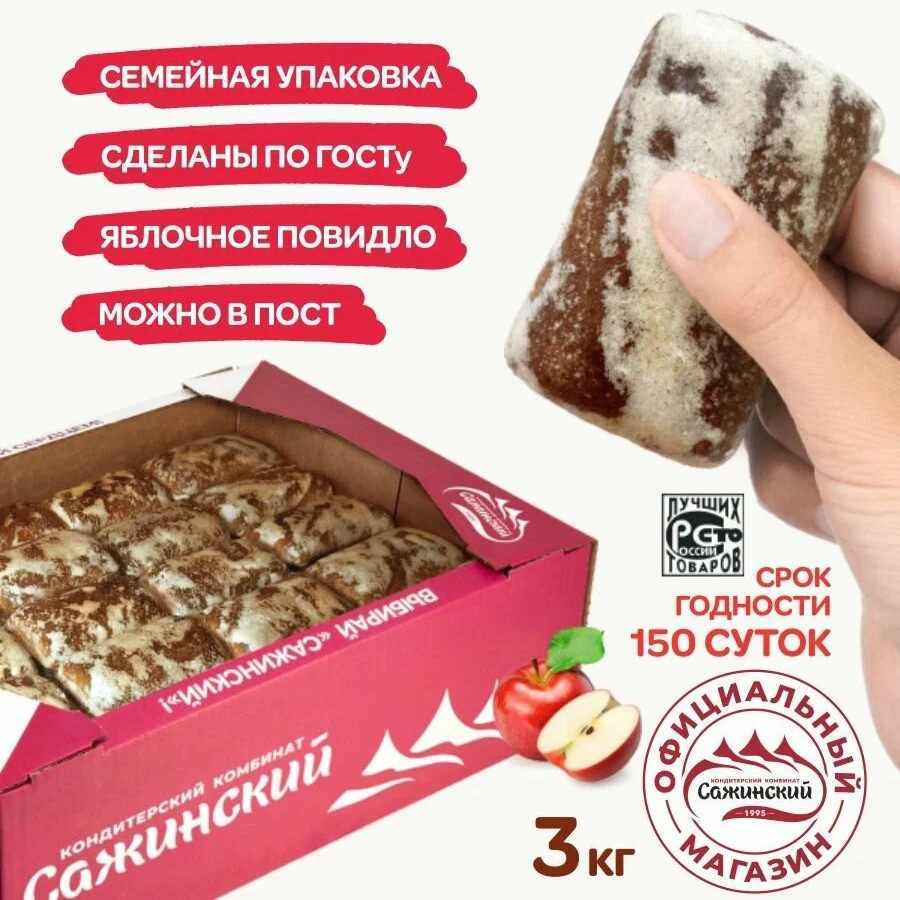 Цена за упаковку 882р. Сырцовые пряники, изготовлены по ГОСТу из заварного имбирного теста с начинкой из яблочного повидла. Упаковка весом 3 кг отличный вариант для большой семьи или сладкоежек, вкусные и сытные.