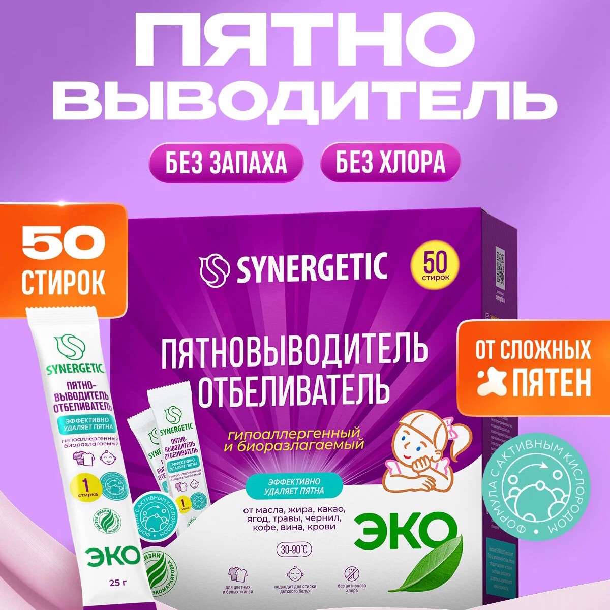 Пятновыводитель-отбеливатель SYNERGETIC для цветного и белого, без хлора 50 стирок