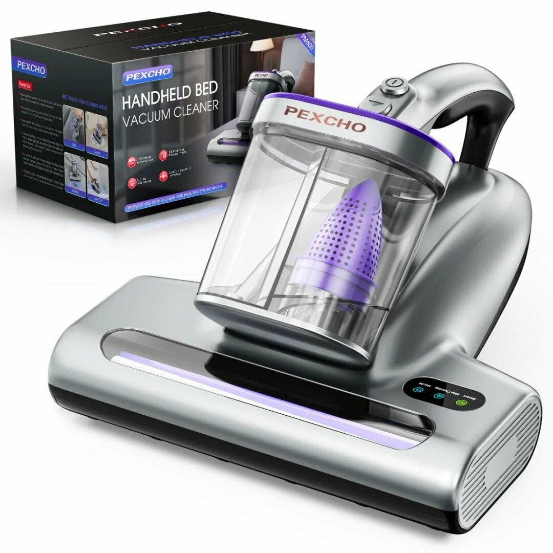 Убирает пылевых клещей и аллергены из матрасов, подушек и мягкой мебели. Мощность всасывания 15 кПа, частота ударов 60 000 в минуту - выбивает грязь из глубины. Встроенный LED-сенсор показывает красным самые запылённые участки, а когда становится чисто - загорается зелёным. Система двух стаканов не даёт пыли вернуться в воздух. Работает без химии.