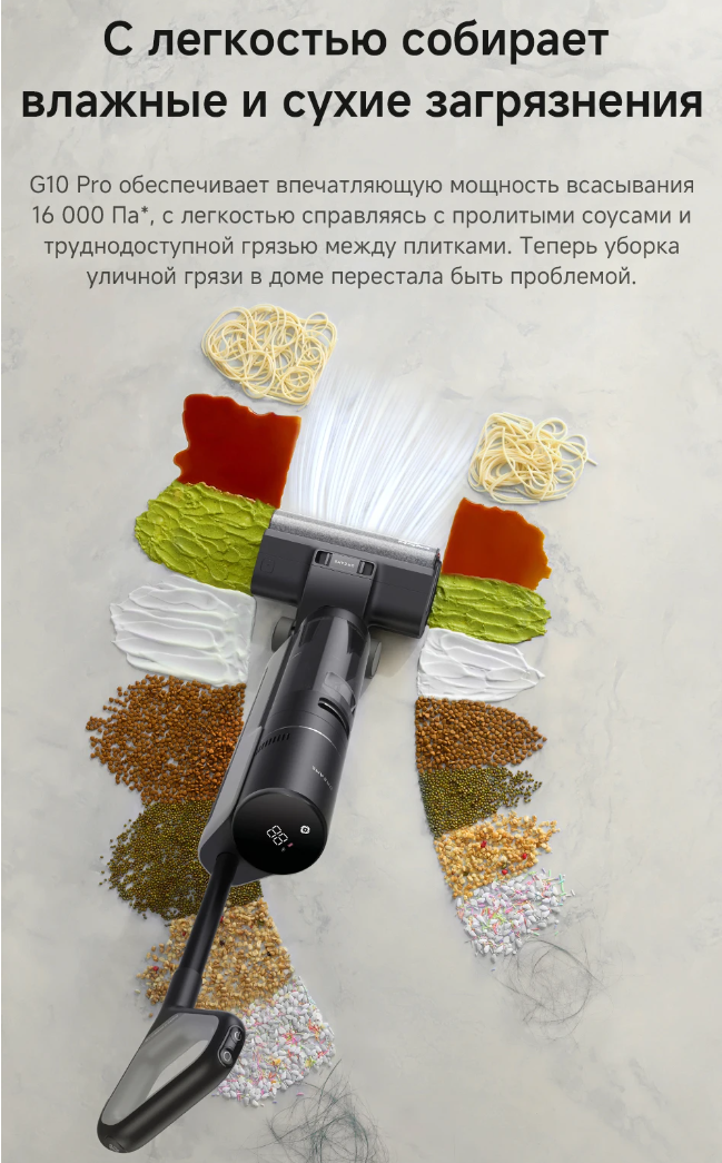 мощность всасывания - 16000 Па (движок бесщеточный)