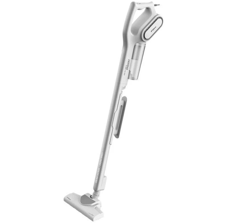 210 Вт всасывания, пылесборник 0.8 л, HEPA-фильтр, циклонная система - мелочь не летает обратно. Ручной блок отсоединяется - мебель, клавиатуру, салон авто чистишь без гемора. Три насадки в комплекте: для пола, мебели и щелевая.