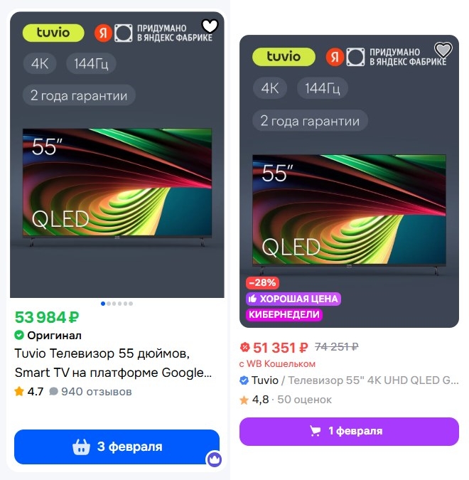 QLED за 35 тысяч! Телевизор Tuvio TQ55UFGCV5 в 55” на Яндекс Маркет - цена ниже, чем на Ozon и WB