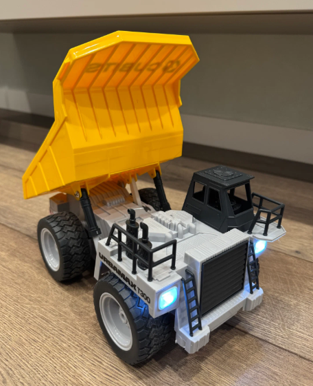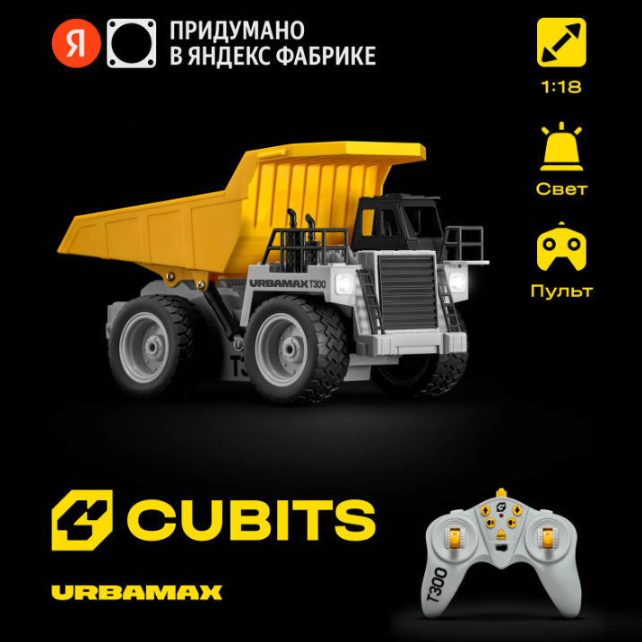 Самосвал Urbamax T300 - это детализированная радиоуправляемая модель в масштабе 1:18 для реалистичной игры. Машина обладает высокой проходимостью благодаря полному приводу и резиновым шинам с протектором. Гидравлическая система позволяет управлять подъёмом кузова, имитируя работу настоящей спецтехники, и перевозить грузы весом до 3 кг.