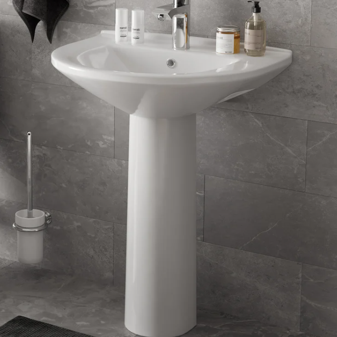 Вроде неплохая цена. она из сантехнического фарфора, 600 мм в ширину, 480 мм в глубину и 195 мм в высоту, общий вес 13.8 кг. Комплектуется сливным хромированным кольцом. Для установки необходим отдельно приобретаемый пьедестал или настенное крепление.