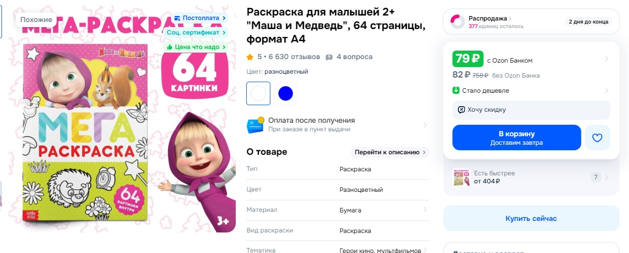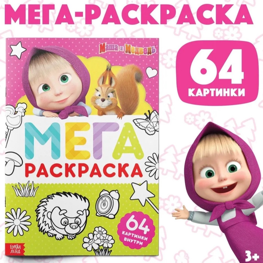 Раскраска для малышей 2+ "Маша и Медведь", 64 страницы, формат А4