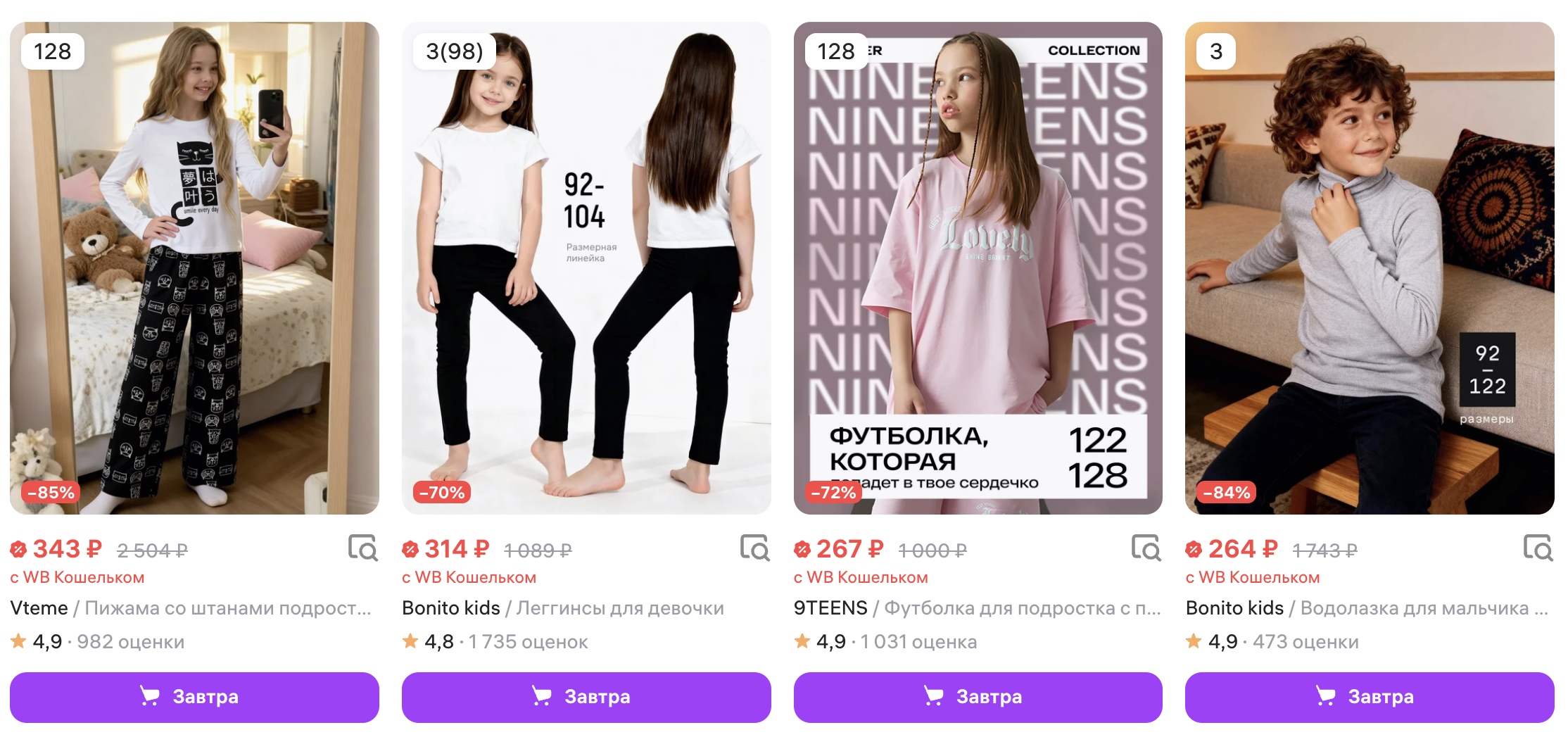 В каталоге водолазки от 264₽, футболки от 267₽, леггинсы от 314₽, пижамы от 343₽ и многое другое. Размеры ещё есть!