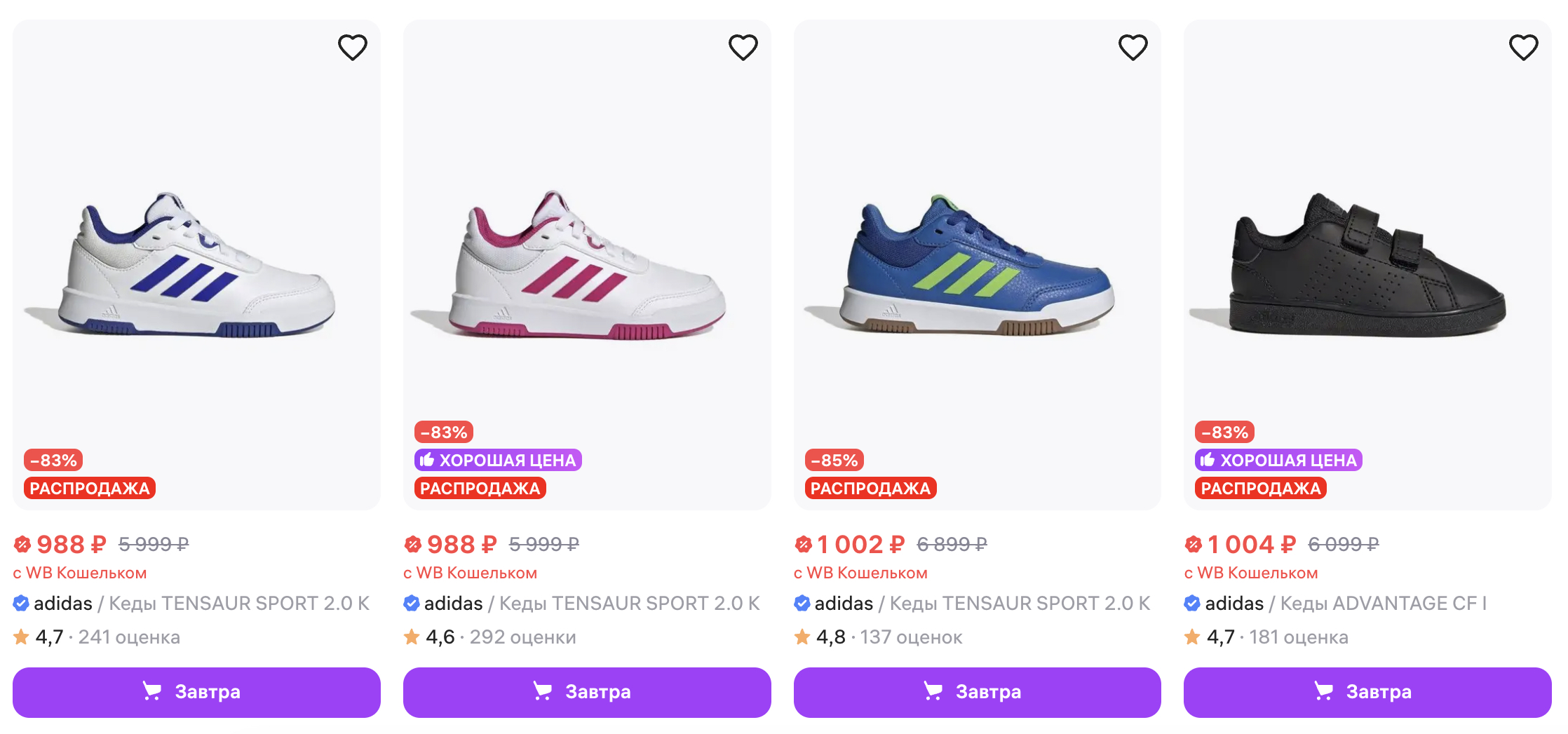 Разбирают очень быстро! В каталоге кеды и кроссовки для взрослых и детей.