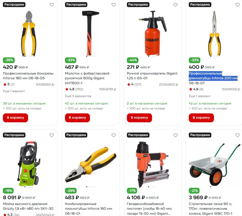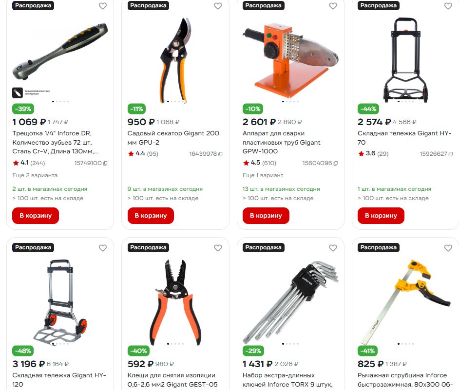 На ВсеИнструменты - большая распродажа товаров для дома, дачи и сада Gigant и Inforce