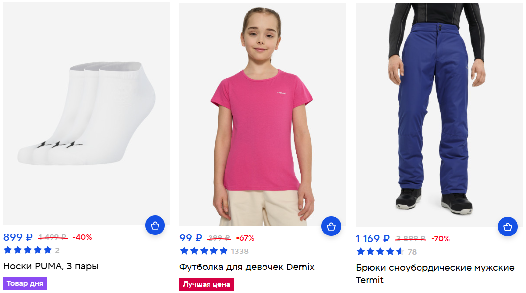 Сейчас в Спортмастере проходит распродажа, в каталоге большой выбор одежды, обуви и аксессуаров для взрослых и детей по очень выгодным ценам.