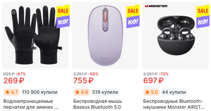 На AliEpress можно выгодно закупиться при заказе комбо-товаров от 1000₽. В каталоге представлены разделы с одеждой, обувью, аксессуарами и не только, например: