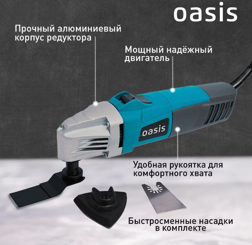 Насадки меняются без ключа - быстро и удобно. Редуктор алюминиевый, не перегревается при долгой работе. В комплекте уже есть скребок, пильное полотно, шлифподошва и наждачка. За такие деньги - отличный вариант для дома и дачи.