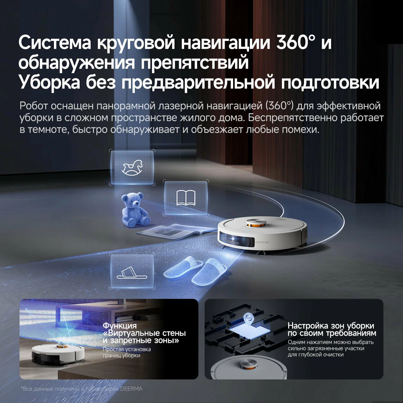 Мощный робот с всасыванием 15000 Па - справляется с коврами и мелким мусором. Лазерная навигация на 360° строит точные карты, запоминает несколько этажей и строит маршруты, чтобы не пропускать участки. Есть влажная уборка с вихревой тряпкой — без разводов. Управление через Mi Home, можно ставить запретные зоны и следить за уборкой удалённо. Запутывание шерсти и волос минимальное за счёт запатентованной системы Golden Triangle. Автоматически объезжает препятствия и не падает с лестниц.