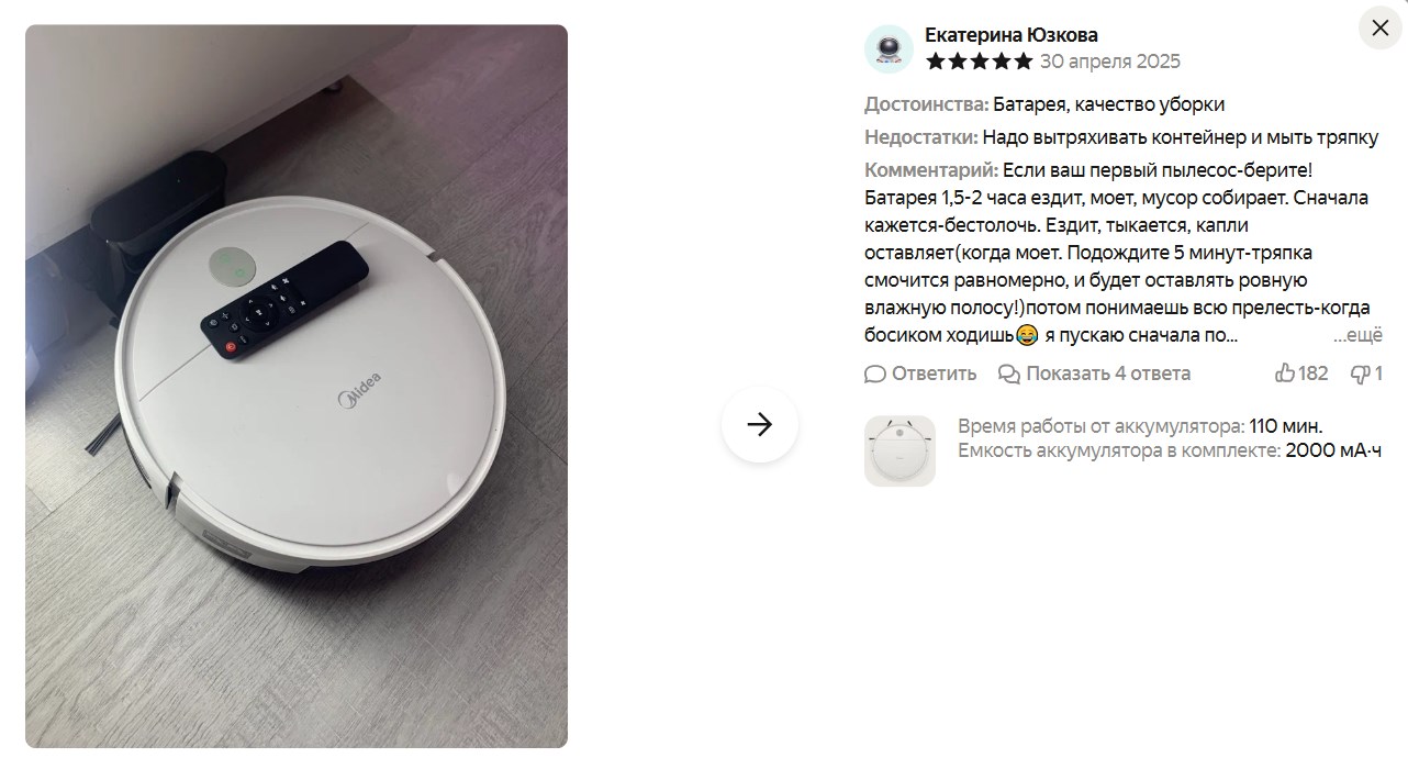 сейчас можно взять за 5397₽ на Яндекс Маркете - это хорошая цена для модели с сухой и влажной уборкой, автовозвратом на базу и 110 минутами работы от аккумулятора. тонкий корпус легко заезжает под мебель, есть HEPA-фильтр, датчики высоты (чтобы не упасть) и два режима подачи воды. контейнеры раздельные: 0,2 л для пыли и 0,23 л для воды.